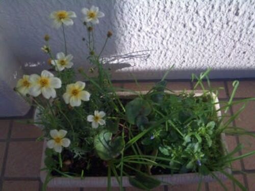 あたらしい携帯のカメラは、ちょっと高機能。 とりあえず、おまかせモードで Myガーデンを撮影しましょう。 プランターF0911 ウインターコスモス 少しズームでみると ここまでズーム、できましたよ。 西日がきついけど、どうかしら。 プランターA0908 ペン…