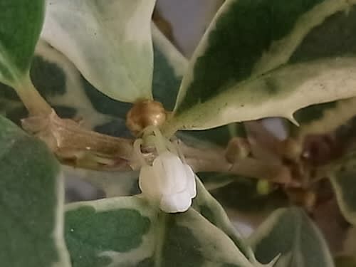 ヒイラギの白い花の蕾 寄せ植え鉢-A うっかり見逃しそうな小さな蕾。 めも:2012/11/13 CX2 で撮影