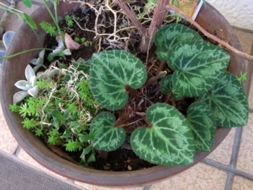 ポップブッシュの鉢 (寄せ植え鉢-P) ミニシクラメンが元気です。 近寄ってじっくり見ると・・1つ目の蕾を見つけました。 小さな蕾、ズームで見てみましょう! めも:2012/11/13 CX2 で撮影 Myワード : MyGシクラメン