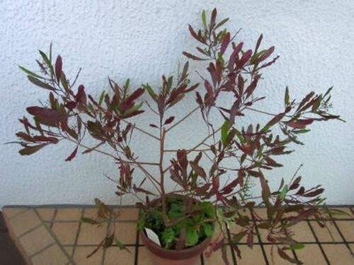 今年も 咲きました。 (寄せ植え鉢-P) 面白い ポップブッシュ の花 ドドナエア プルプレア (ポップブッシュ) ムクロジ科ドドナエア属 めも:2013/04/22 CX2 で撮影